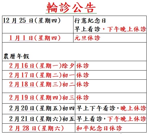 當天及周六例假日無法預約,請於現場掛號,不便之處請見諒。