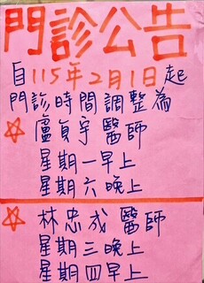 @ 若號碼已超過,須再等候3位看診,如果是過號第二位;須等候6位看診,依此類推,不便之處敬請見諒!!