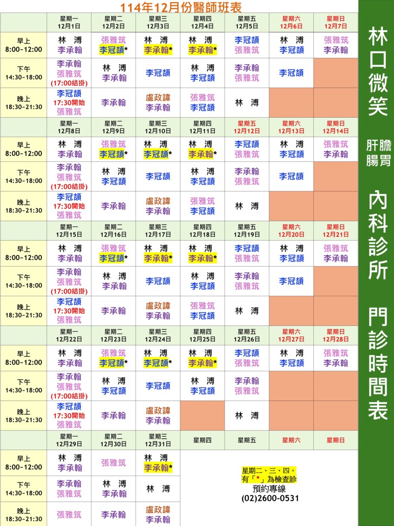 ⭐林口微笑內科診所⭐ 慢性病長期處方、舒眠腸胃鏡檢查、糖尿病照護中心、BC肝炎追蹤診治 👵80歲以上老人可優先看診,需等候現場安排🧓 🌺預約號碼報到時間為結診的最後30分鐘,逾時將取消預約號碼🌺