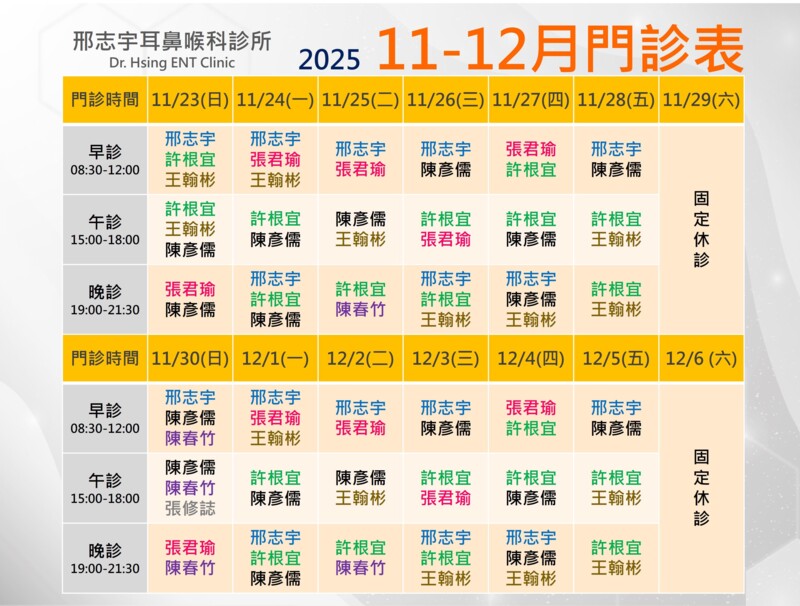 🌳2025年門診表