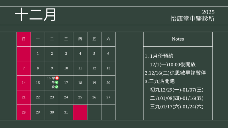 造成不便敬請見諒,怡康堂中醫診所關心您。