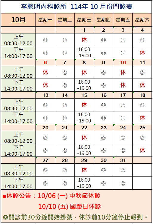 ★『下午診』:可於13:15於診所櫃檯放置健保卡,13:30開始掛號時會依現場號情形給予調整掛號號碼。