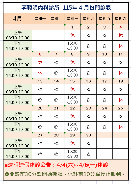 ✪清明連假休診公告:4/4(六)~4/6(一) 休診 (!!!)