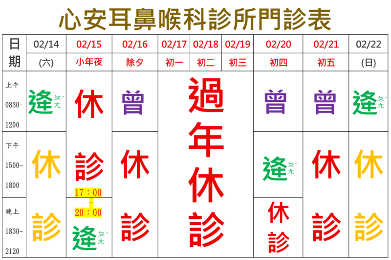 2/15(除夕)只有早診;