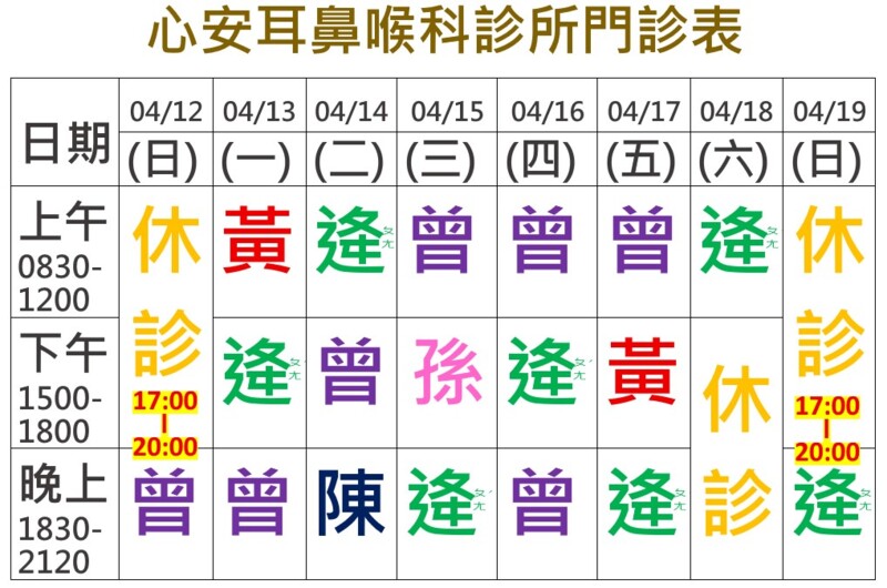 ★5月份起,每週六早上、下午皆有看診!
