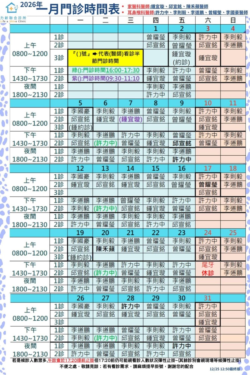 ►門診異動較大,請留每位醫師的門診時間,謝謝您的配合