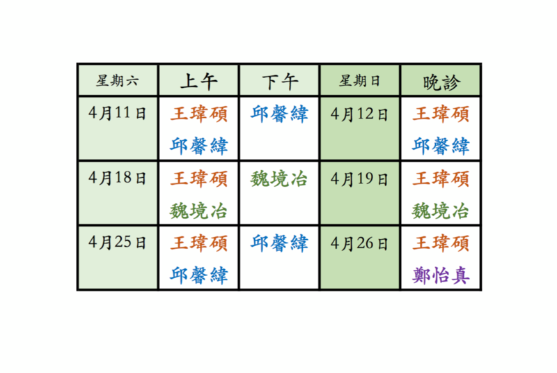 週六、日醫師門診表