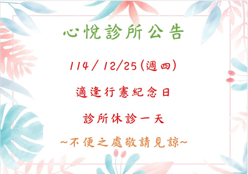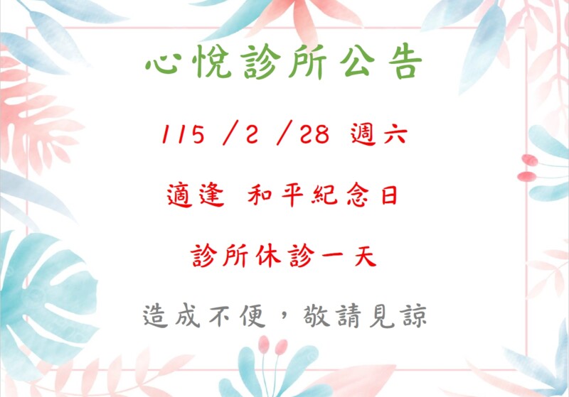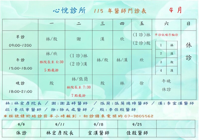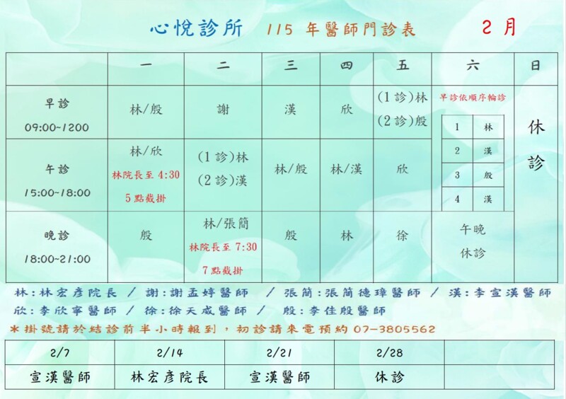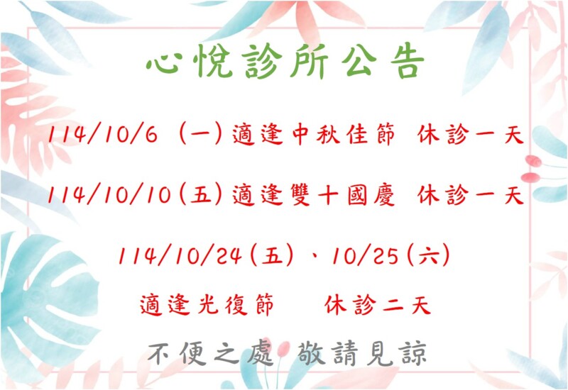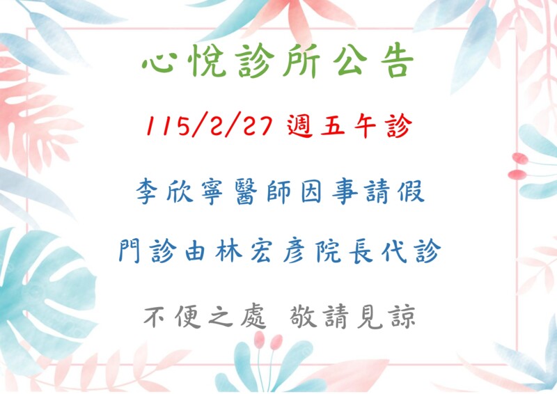 因應疫情鬆綁政策,即日起已無提供視訊看診服務,回歸實體看診