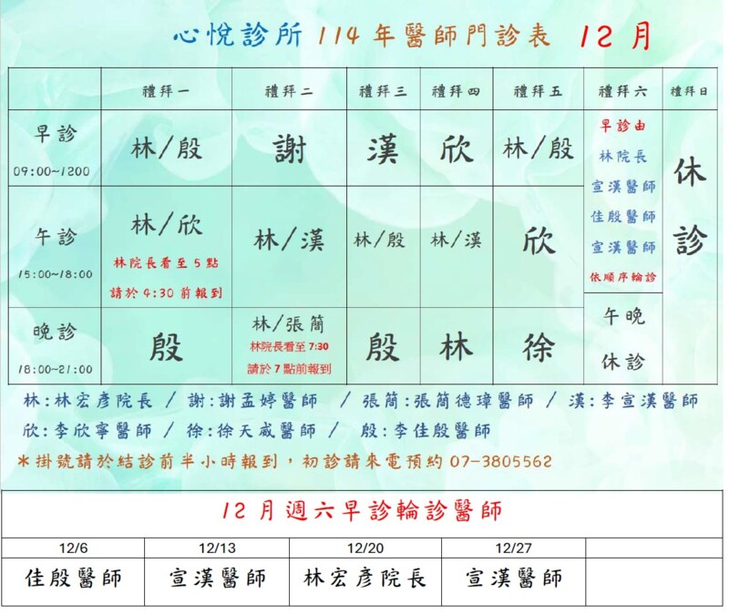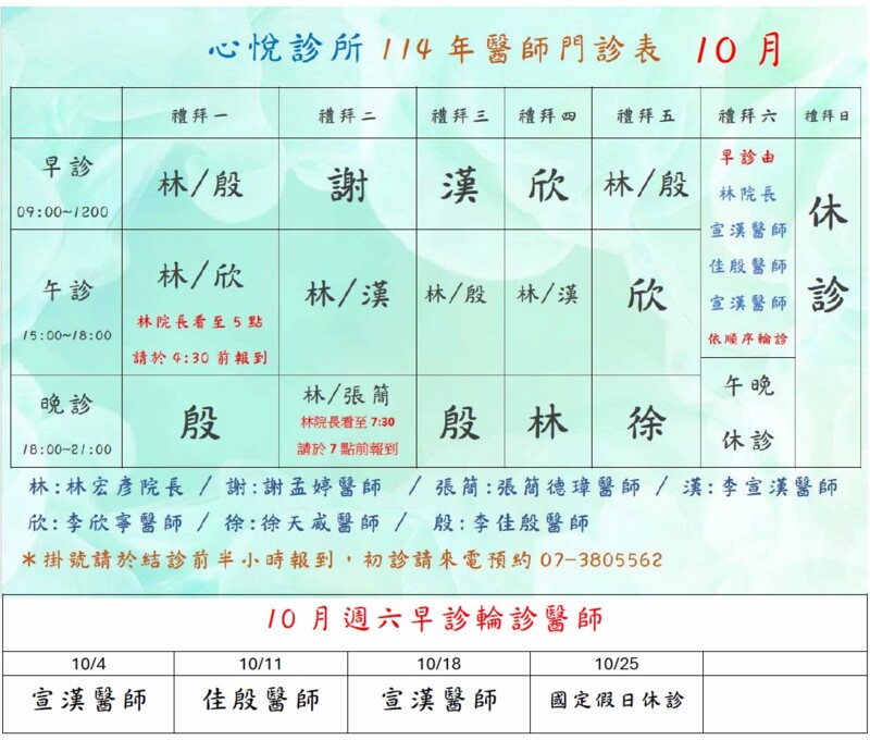為提供更妥善醫療服務,本院將於8月4日(周一)起調整醫師門診表,請您留意時段變動,並提前預約,以免撲空喔。