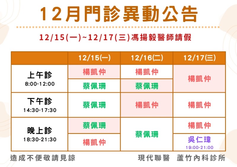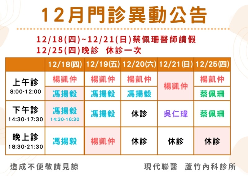 肝膽腸胃門診(12月開始)