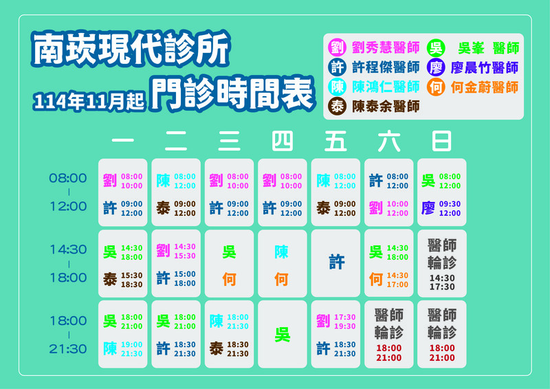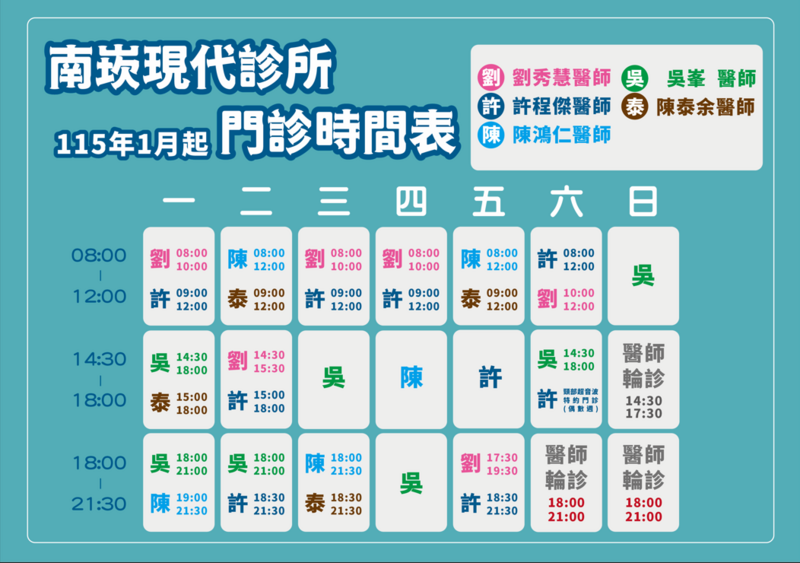 耳鼻喉科門診時間(115年1月開始)