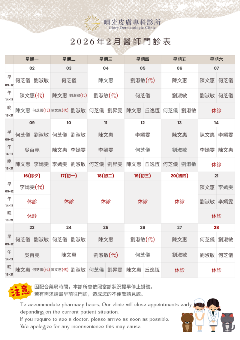 因配合藥局時間,本診所會依照當診狀況提早停止掛號。