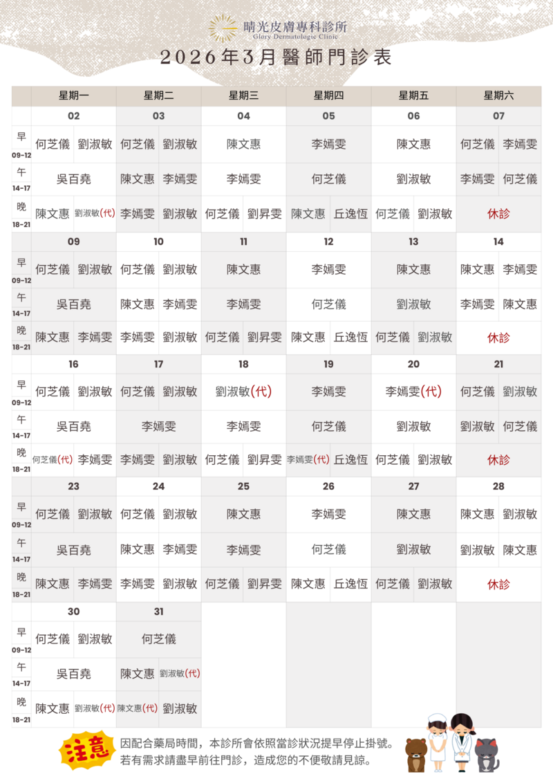若有需求請盡早前往門診,造成您的不便敬請見諒。