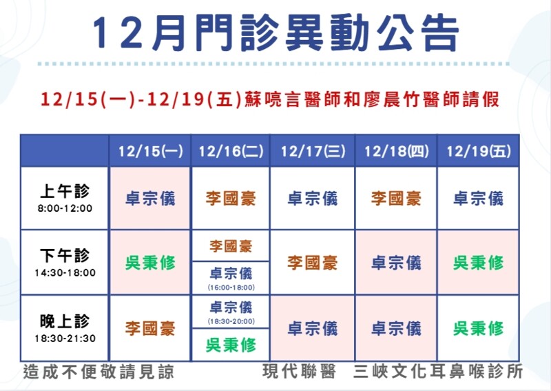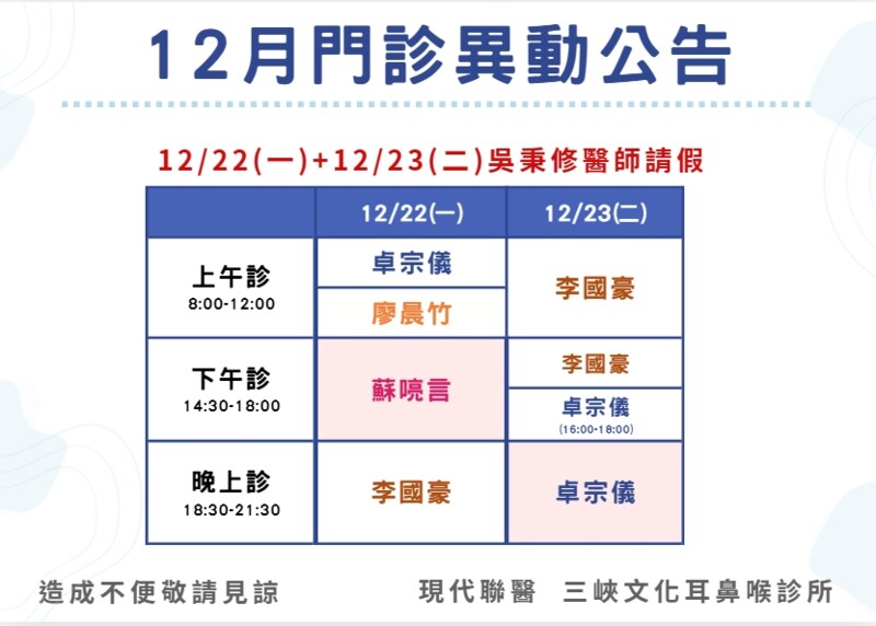 📢 歡迎 王鼎程 醫師 加入文化耳鼻喉科 📢 歡迎 蘇喨言醫師 及 廖晨竹醫師 加入文化耳鼻喉科診所 📢