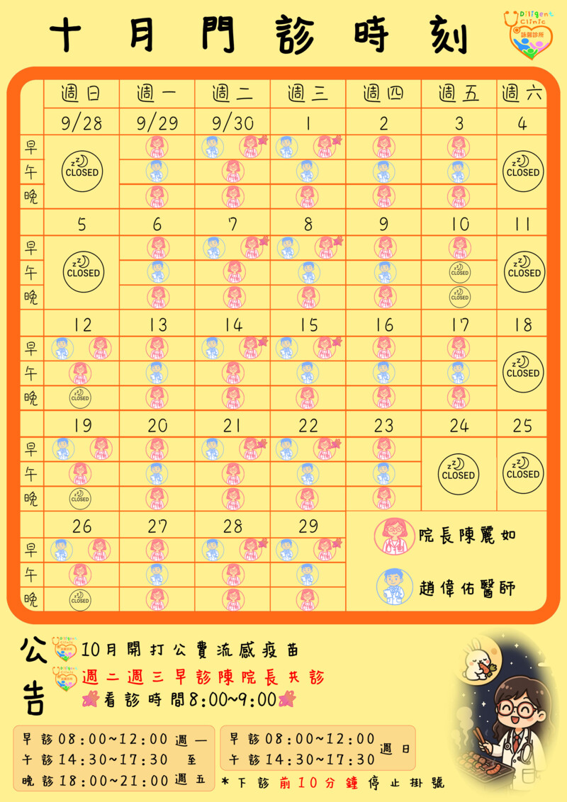 🙆♂️🫁週二下午診重新開放🫁 [詠馨診所] 提供公費65歲以上長者施打肺炎鏈球菌疫苗🫁 🙆♂️ [詠馨診所] 提供新冠肺炎疫苗 🙆♂️ 👍 [詠馨診所] 提供兒童常規疫苗,請帶寶寶手冊前來施打 👍 🩺 [詠馨診所] 提供自費疫苗:兒童輪狀病毒口服疫苗、兒童腸病毒疫苗、新型9價HPV疫苗、B型肝炎、水痘疫苗、三合一(破傷風、白喉、百日咳)、帶狀疱疹疫苗、肺炎鏈球菌疫苗🩺 👩⚕️ [詠馨診所] 提供公費、自費流感疫苗歡迎諮詢👩⚕️ 👃 [詠馨診所] 在乎您的每一口吸進去的空氣,備有四台專業空氣清淨機,請放心就診。👃 🚘昶影停車場(立德派出所對面)為本診所特約停車場,看診折抵半小時停車費。敬請多加利用。🚘