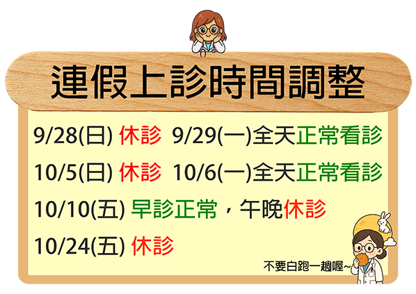 最後報到時間:下診前10分鐘 逾時可能無法看診,敬請配合