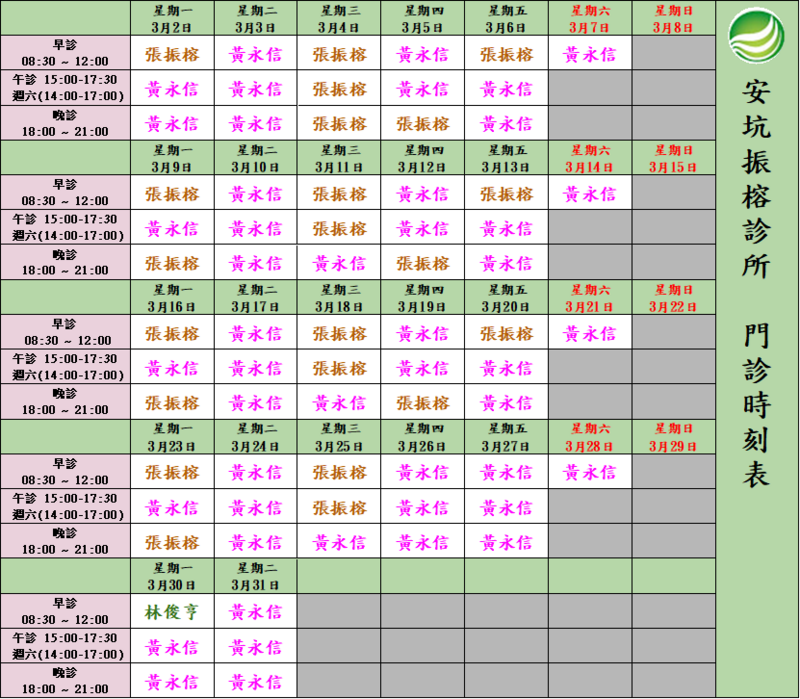 **115年三月份醫師班表**