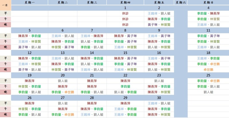 **1月醫師班表已更新***止掛時間:早診11:50前、午診17:50前、晚診21:30前,預約掛號者請於止掛時間前報到,未報到者將取消掛號,若人數眾多時,醫師現場會提前止掛,造成不便請見諒。<本院所提供各種自費疫苗提供民眾選擇>