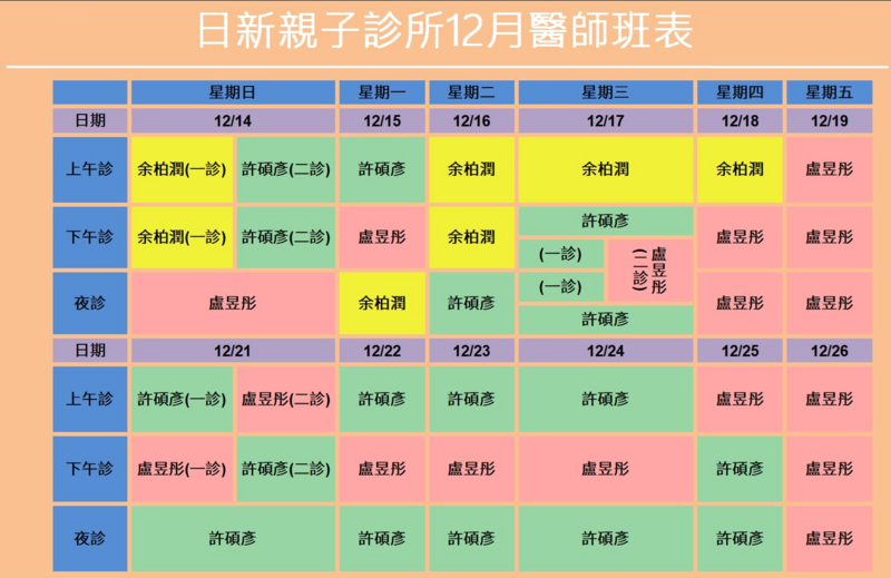 2025/12/18-2025/12/26 余柏潤醫師請假 請留意班表異動