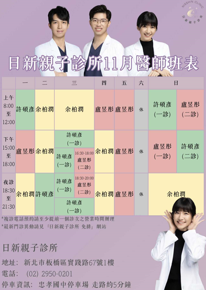 早診 8:00-12:00, 下午診 15:00-18:00, 晚診 18:30-21:30
