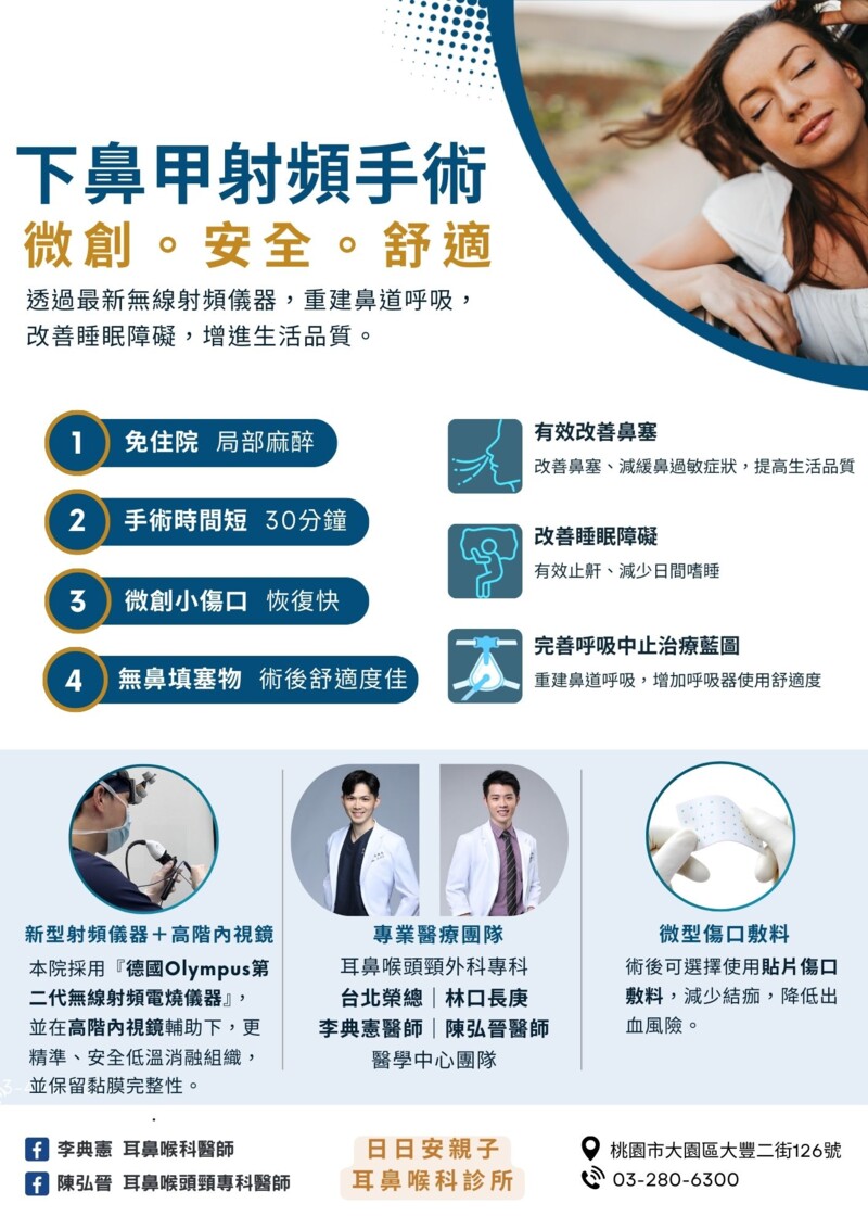 👨⚕️鼻塞/止鼾射頻微創手術👨⚕️鼻咽喉內視鏡檢查👨⚕️超音波甲狀腺穿刺👨⚕️醫院級標準聽力檢查👨⚕️小兒/成人耳鼻喉科疾病👨⚕️耳鳴眩暈👨⚕️聽力障礙👨⚕️甲狀腺疾病👨⚕️一般皮膚疾病👨⚕️睡眠呼吸終止治療中心
