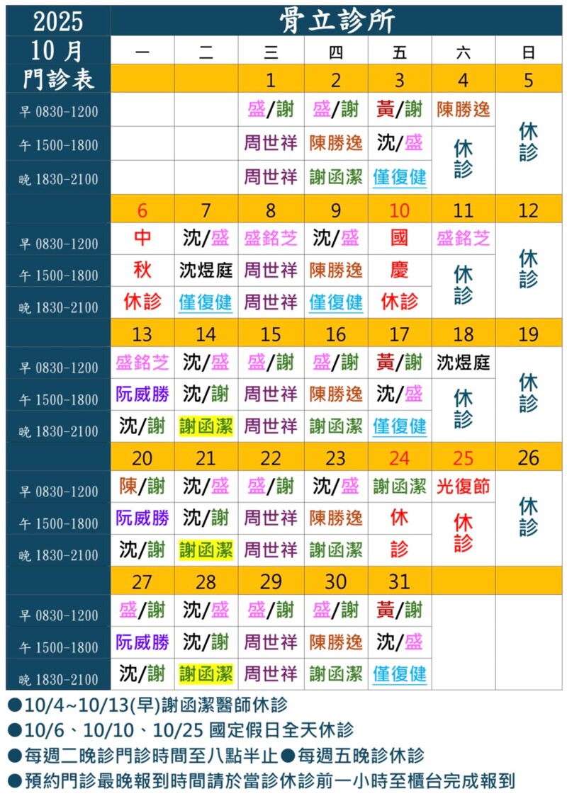 👨⚕️骨立診所公告🩺預約門診最晚報到時間請於休診前一小時報到,逾時者不保留預約,感謝配合🙂 ☎️(06)3020726