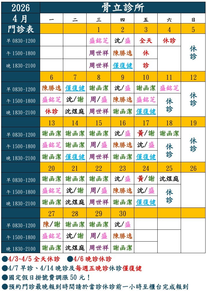 👨⚕️骨立診所公告🩺預約門診最晚報到時間請於當診休診前一小時報到,逾時者不保留預約,感謝配合🙂 ☎️(06)3020726