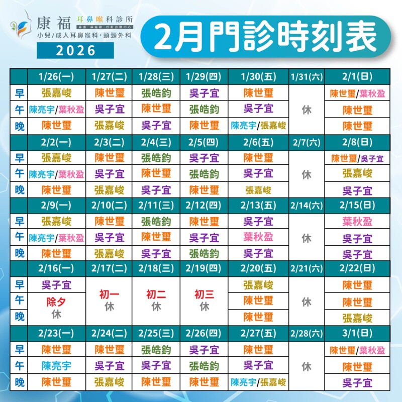 ★ 最新門診時間表 ★