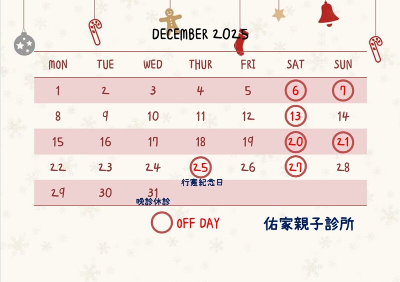 2025/12~彈性休診日期如下,歡迎諮詢🤩🤩🤩