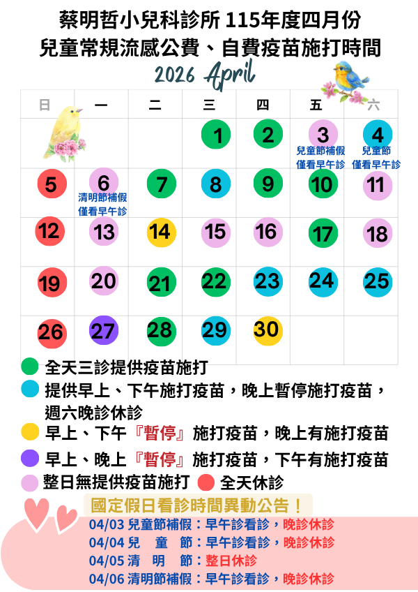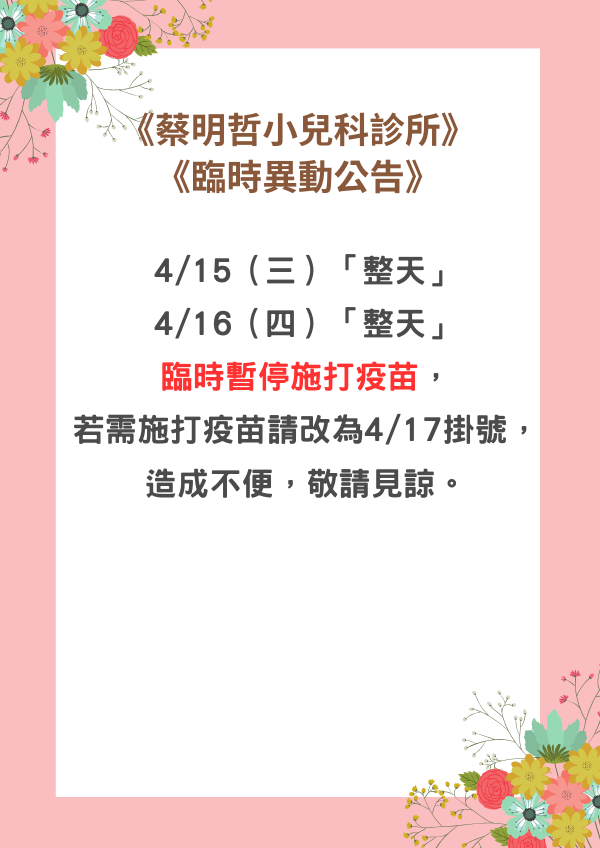 ✨電話預約請撥04-23338728✨現場掛號如遇預約人數較多需等候,可多加利用看診進度查詢,快到前6號請至現場等候,若遇過號人數較多需等候敬請見諒🙏 ✨預約掛號請提前6號報到並量體溫繳交健保卡才算完成報到。‼️若報到時已過號請看下方排序規則‼️ ⚠️有預約請注意最晚報到時間(請下拉網頁看時間表格),超過時間將自動取消預約。✅加官方LINE內建看診進度查詢。 ✅施打兒童常規疫苗請於有施打疫苗的診次(下拉網頁有疫苗月曆),並攜帶兒童手冊及健保卡報到,若需電話預約請告知要施打疫苗。