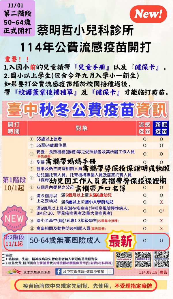 114年公費流感疫苗『第二階段』11/01 開打!!(對象請看下圖)