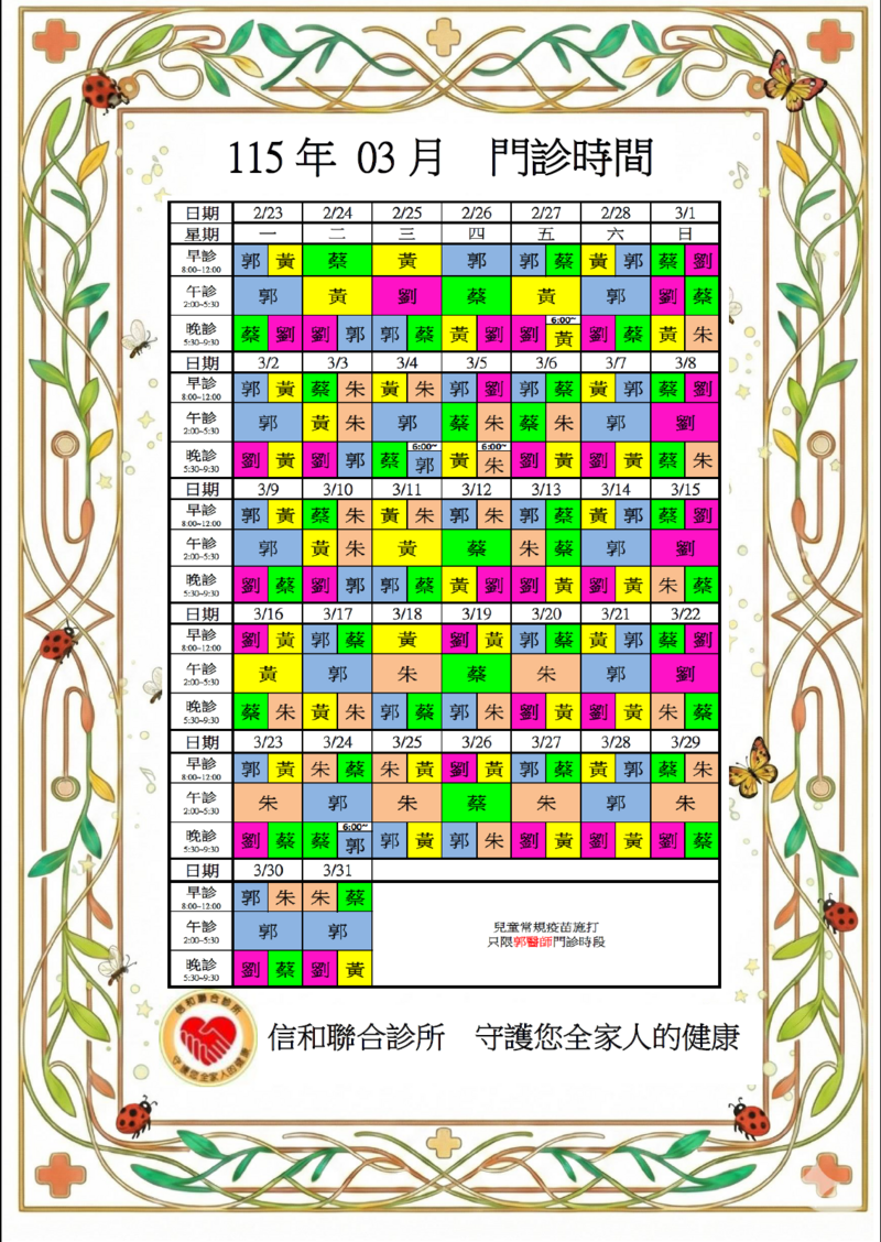 本院提供國健署免費成人健檢+BC肝篩檢、大腸癌篩檢、口腔黏膜檢查以及免費戒菸門診請多加利用。