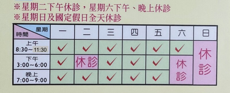 停診公告:11/10~11/16 休診一週,只有週一晚上、週二上午有看診