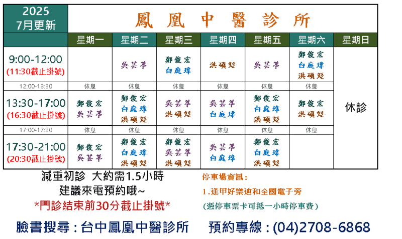 鳳凰中醫診所 -台中減重門診/台中減肥推薦/婦科/腸胃