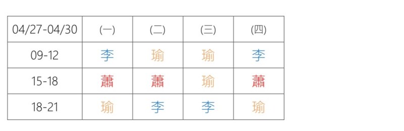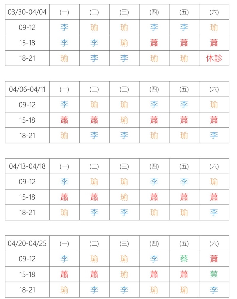| 時段 | 看診時間 | 預約最後報到時間 |