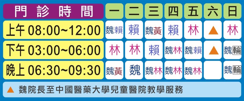 魏醫師周三上午門診迄11點。