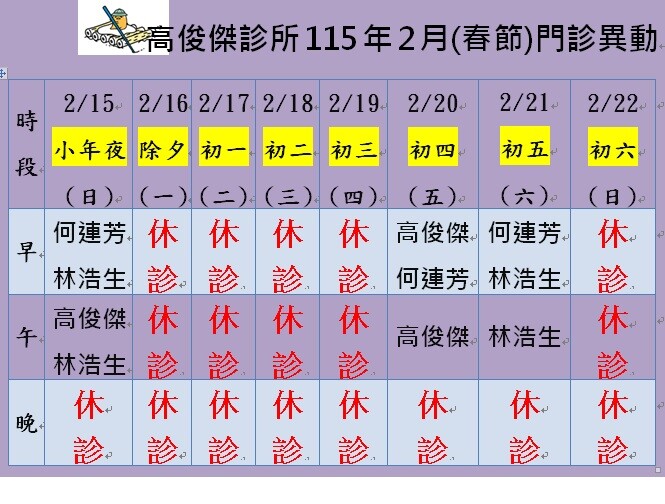以上提供給家長參考~高俊傑聯合診所 關心您