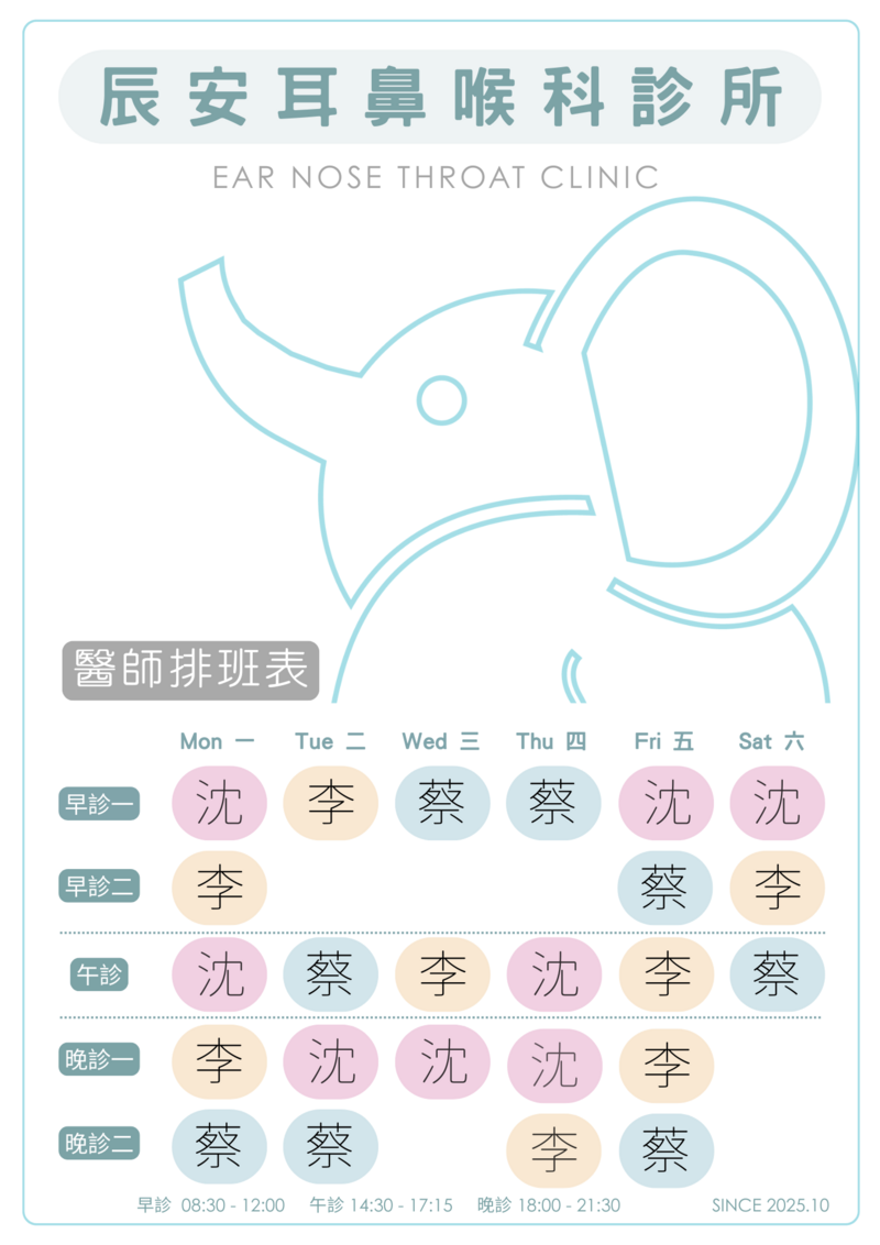 早 08:30 - 12:00 午 14:30 - 17:15 晚 18:00 - 21:30