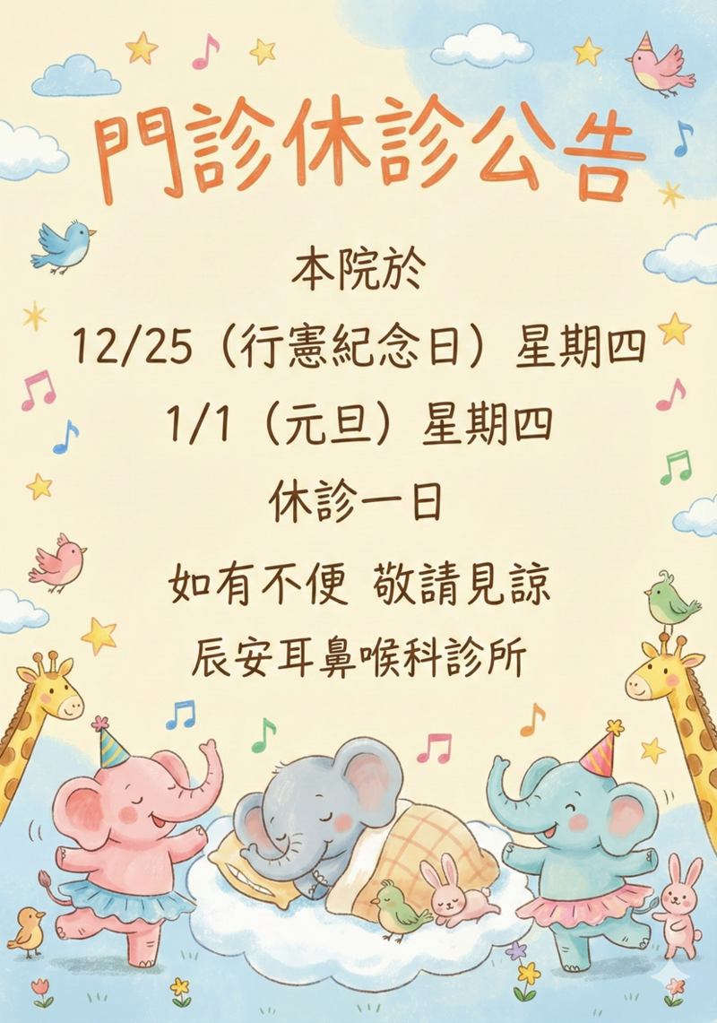 • 連續假期依照門診公告