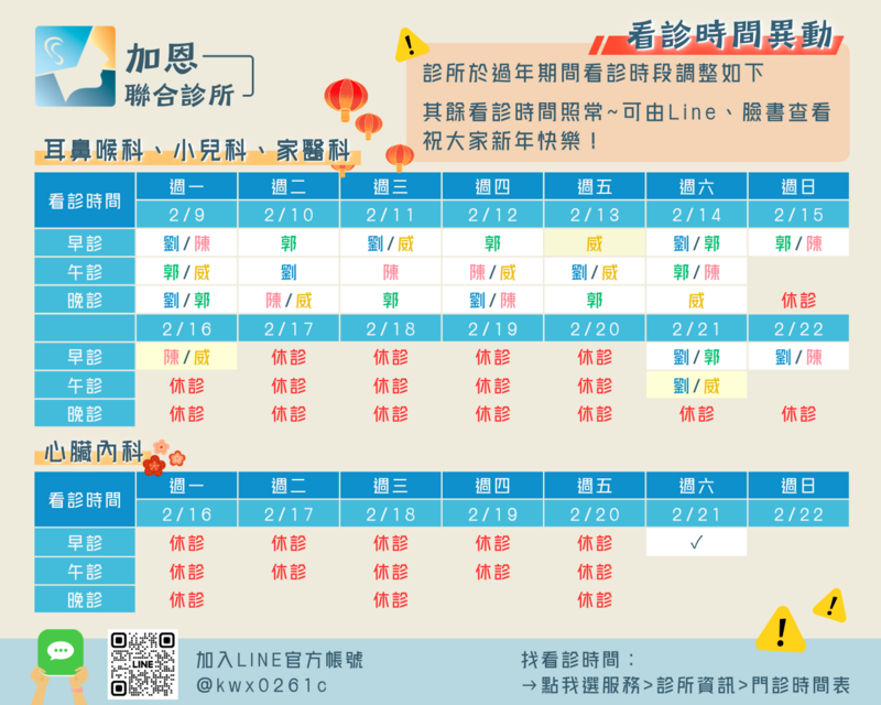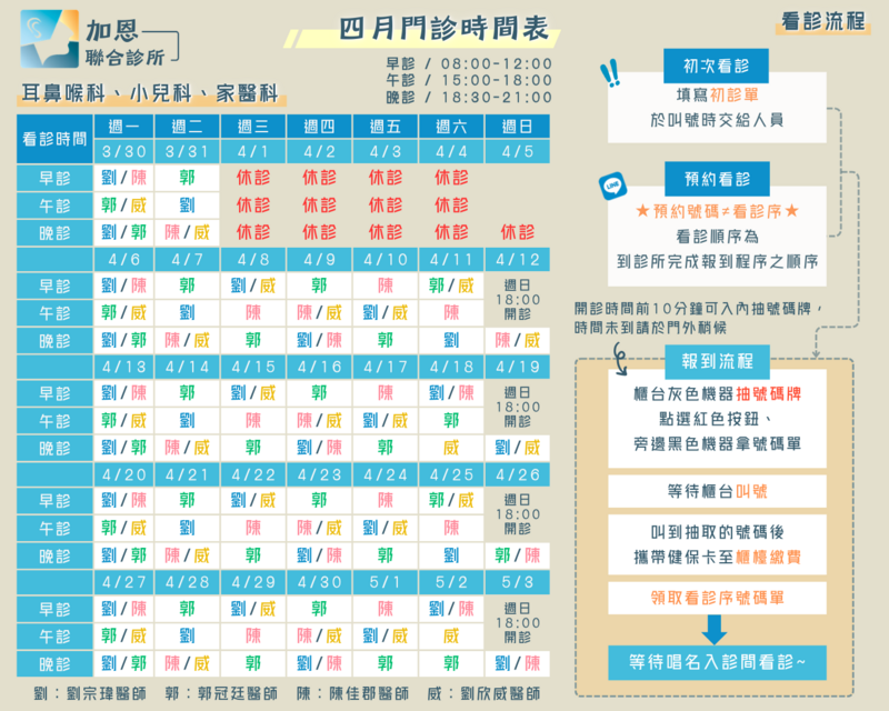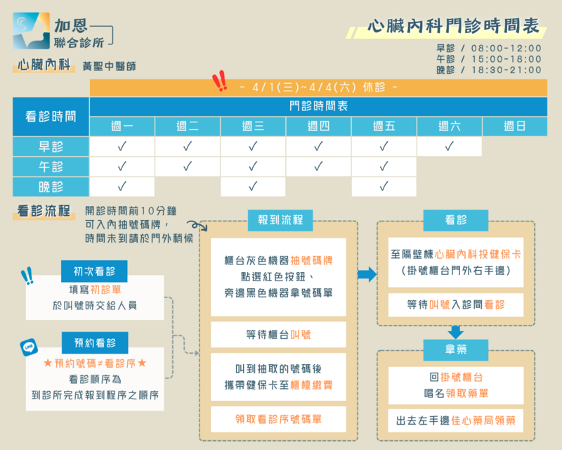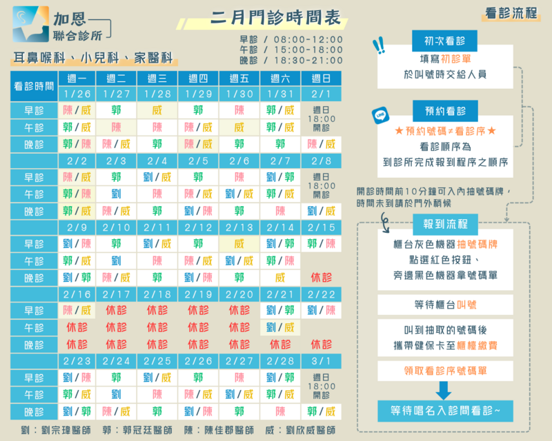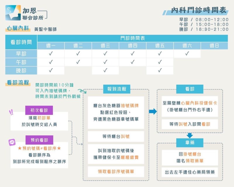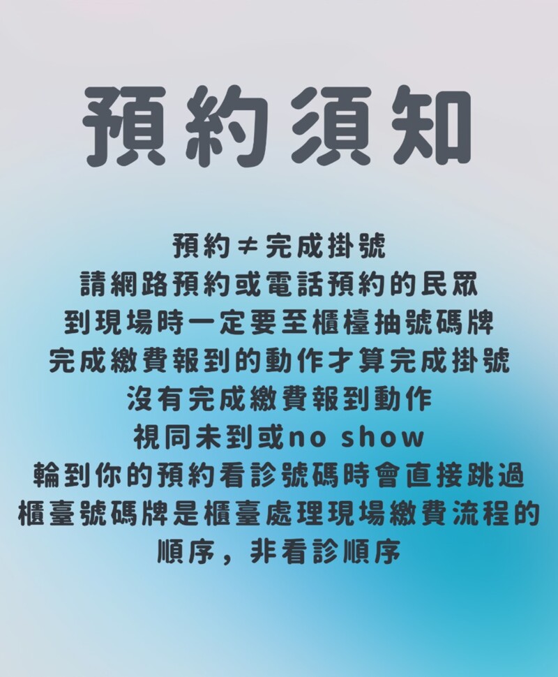 ◎敬請留意燈號,提前8個號碼入內候診,避免過號久候。