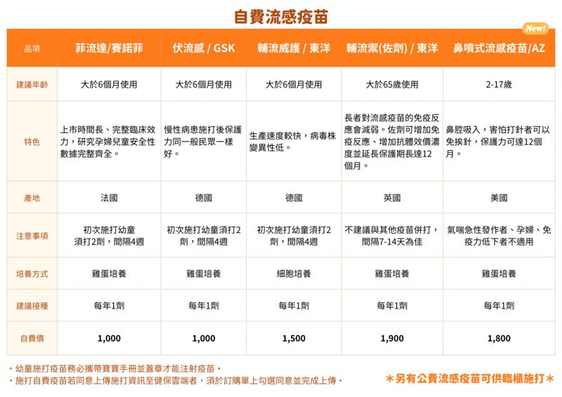 🧡 今年度自費 流感疫苗 開放預約囉!大人、小孩、長輩都有合適的選擇,還有新增免挨針的鼻噴式疫苗!