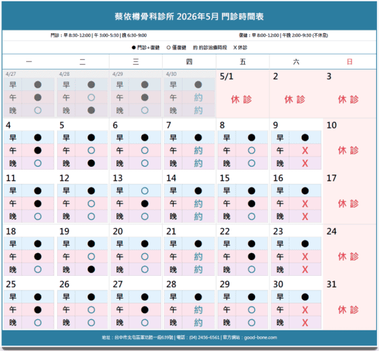 詳細門診時間歡迎參考以下網址: