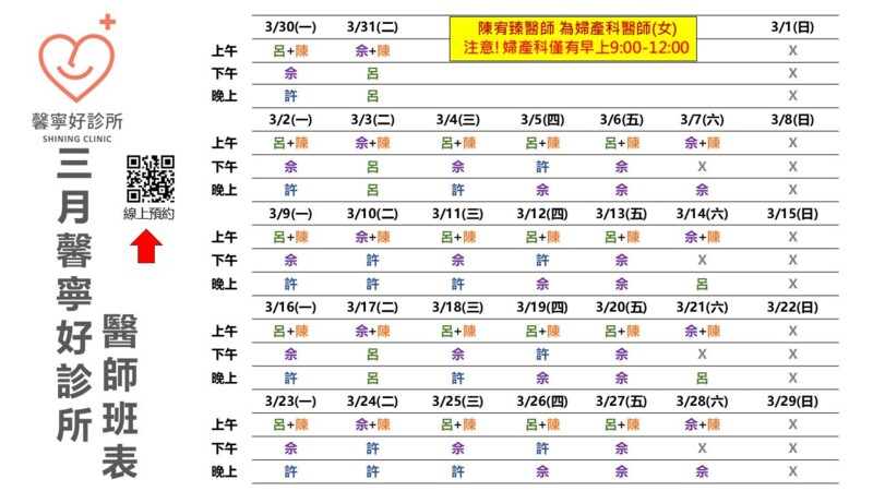 ★成人健檢/口篩/糞便潛血檢查。 ★11/1起50歲以上公費流感疫苗。 ★猛健樂5.10現貨供應。 ★線上掛號(初診可) ★兒童常規疫苗請至馨寧好診所施打