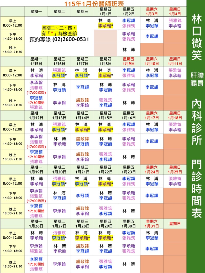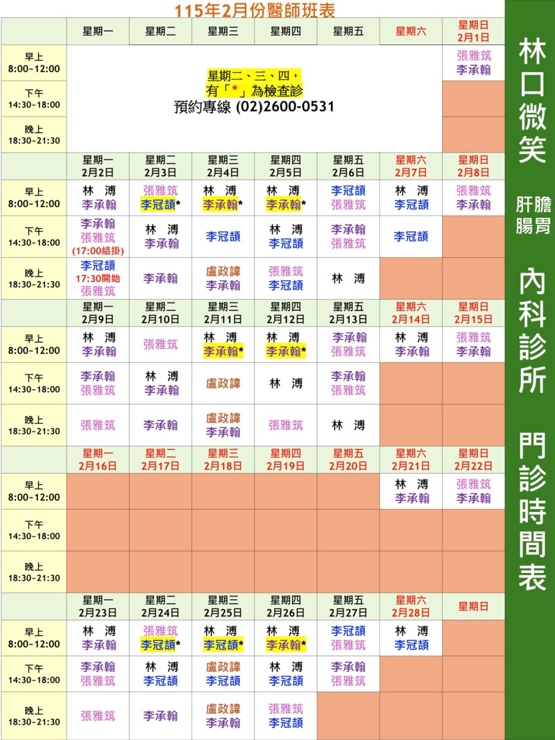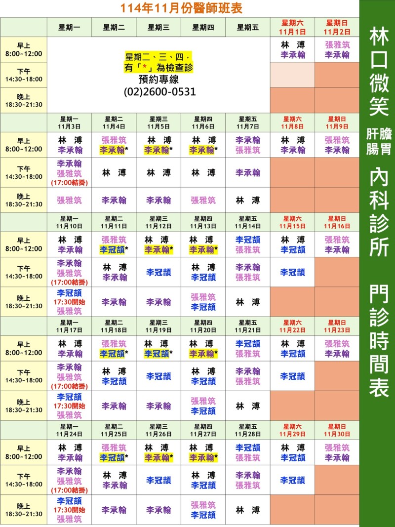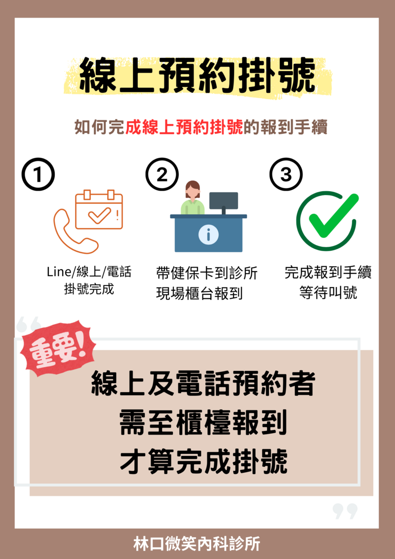 ⭐林口微笑內科診所⭐ 慢性病長期處方、舒眠腸胃鏡檢查、糖尿病照護中心、BC肝炎追蹤診治 👵80歲以上老人可優先看診,需等候現場安排🧓 🌺預約號碼報到時間為結診的最後30分鐘,逾時將取消預約號碼🌺