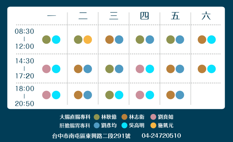 一診 大腸直腸專科:林耿億醫師/劉真如醫師/林志衛醫師