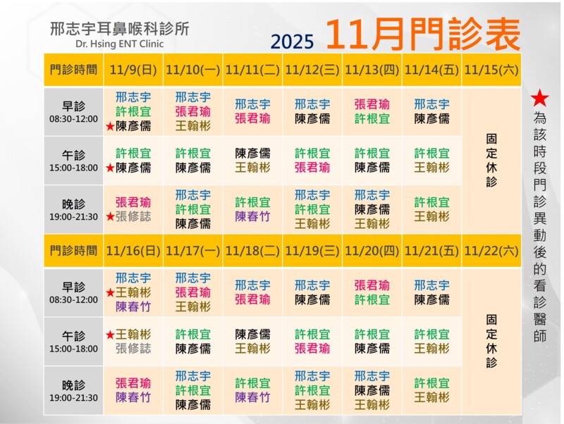 🌳2025年門診表