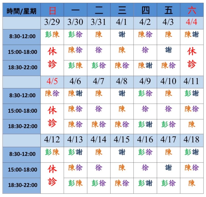 🔊醫師門診表(如下圖)