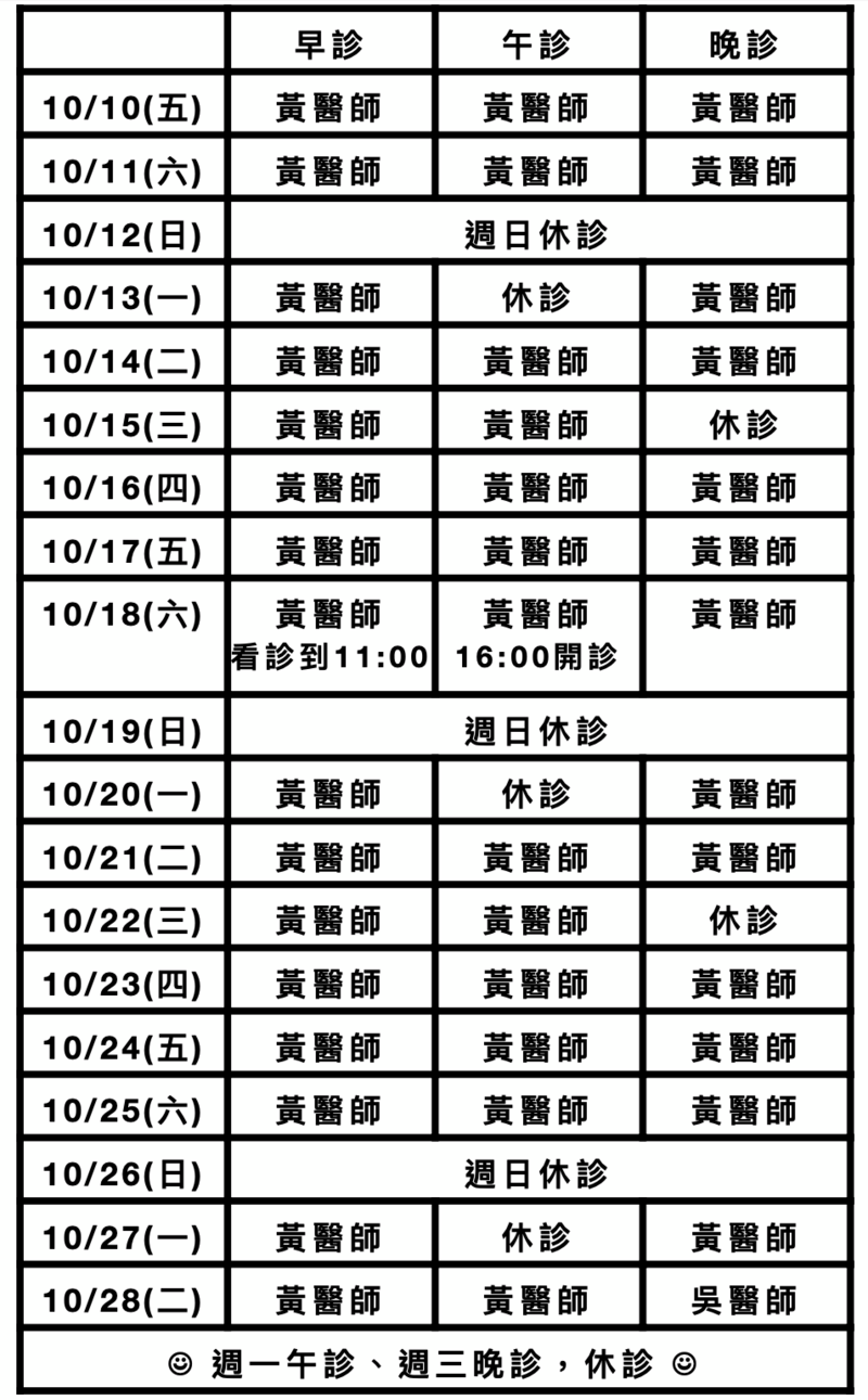 18:00 - 19:10 休診 櫃檯繼續掛號