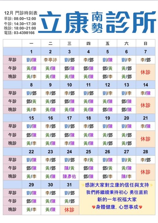 專看糖尿病、高血壓膽固醇痛風慢性病、皮膚病、腸胃不適、腹部甲狀腺超音波例行性追蹤、兒童生長發展、各式公自費疫苗注射