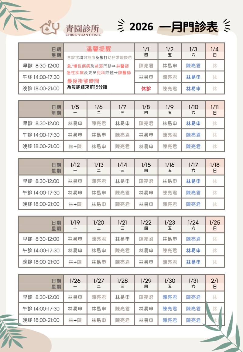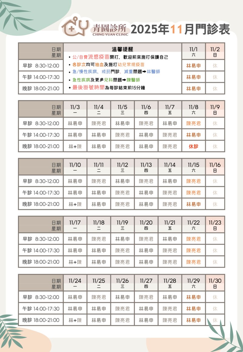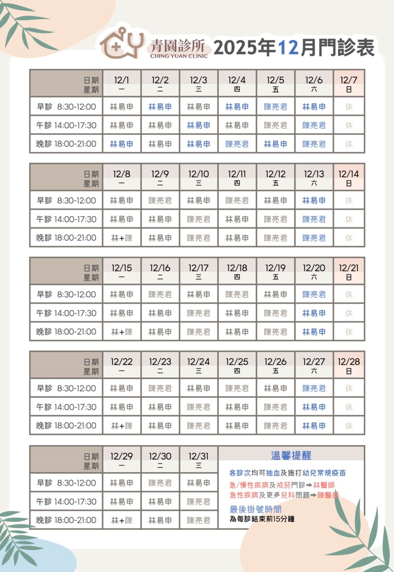 (早診為11:45 / 午診為17:15 /夜診為20:45)